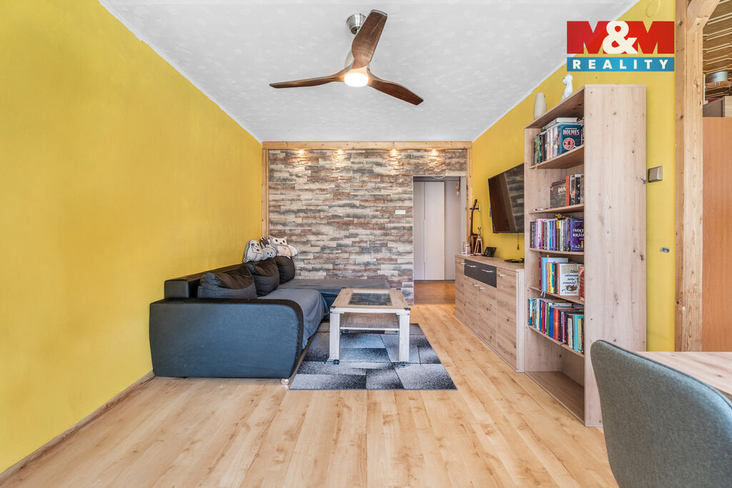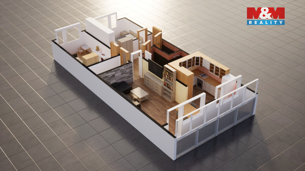 Byt se nachází v klidném panelovém domě v ulici Jiřího Wolkera v Mostě, nedaleko centra a nákupních možností. Dispozice 3 + 1 nabízí prostorný obývací pokoj se vstupem na velkou lodžii, kuchyň s prostornou kuchyňskou linkou, dvě samostatné neprůchozí ložnice přístupné z široké chodby, šatnu, koupelnu a samostatné WC. Dům je po renovaci a má zděné jádro; v bytě proběhla také rekonstrukce podlah, rozvodů a stropních podhledů ze sádrokartonu. Součástí prodeje je komora na patře a sklepní kóje.