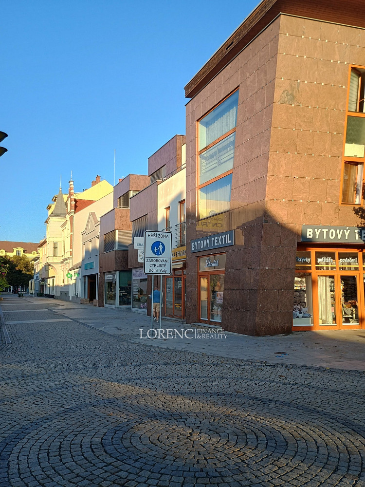 Komerční prostor se skládá z jedné velké místnosti (prodejny) a vzadu je sociální zařízení. Vstup do obchodu/kanceláře je přímo z pěší zóny. Vhodné pro obchod, kancelář. V blízkosti se nachází parkoviště.
