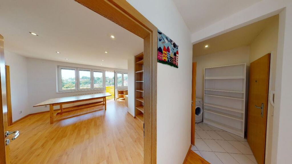 Byt je částečně vybaven, obsahuje kuchyňskou linku, stůl, vybavení pracovny, knihovnu a skříně. Nábytek je možné vyklidit, pokud by nájemníci preferovali vybavit vlastním nábytkem nebo si plánovali pořídit jiný.