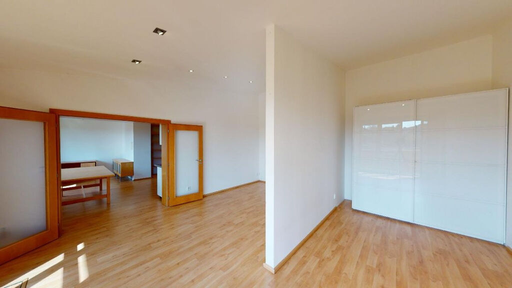 Měsíční nájemné 21 000 Kč + 3 800 Kč poplatky při užívání bytu dvěma dospělými osobami. Smlouvy na dodávky elektrické energie a internet budou převedené na nového nájemníka.