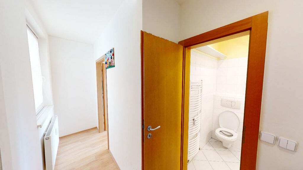 Byt se nachází v centru obce Klecany, která nabízí klidné a pohodlné bydlení s veškerou občanskou vybaveností v docházkové vzdálenosti. Pro nákupy lze využít místní obchody, prodejna potravin je umístěna přímo v domě nebo OC Letňany, které je vzdáleno cca 20 min. jízdy autem. K bytu náleží jedno parkovací stání umístěné ve dvoře za závorou, další možnost parkování je na veřejném parkovišti před domem. Pro spojení do Prahy lze využít také MHD, zastávka autobusu se nachází 70 metrů od bytu a cesta na metro C Kobylisy Vám zabere 25 minut.
