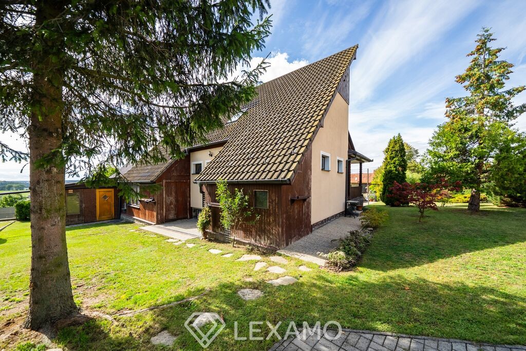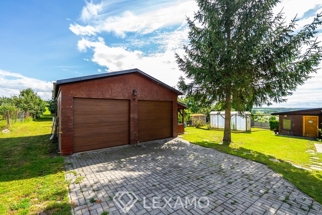 K domu náleží také samostatně stojící dvojgaráž, letní kuchyně a několik dalších technických a úložných prostor. Zahrada je pečlivě udržovaná, osázená okrasnými keři i ovocnými stromy a nabízí dostatek soukromí i prostoru pro odpočinek, pěstování nebo rodinné aktivity.