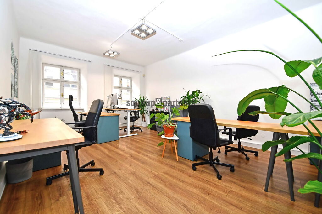 Kanceláře s příslušenstvím - 205 m2, nacházející se ve 3.podlaží historického domu v Praze 1 - Malá Strana. Jedná se o pronájem celého patra. Vhodné na kancelářský provoz, školící centrum, školu, advokátní kancelář apod. Dispozičně je prostor rozdělen na vstupní foyer s recepcí, dále 4 samostatné prostorné kanceláře, místnost s kuchyňským koutem, 2 x toaleta, 1 x sprcha, komora a oddělený prostor se vstupem přes pavlač, kde se nachází další kancelář. Prostory lze však rozdělit na více menších kanceláří. Telefon, internet, počítačová síť - rozvedeno po místnostech. Vybaveno zabezpečovacím systémem. Na podlahách je vinyl v kombinaci s plovoucí podlahou a dlažbou. Po dohodě se současným nájemníkem, lze zanechat vybavení. Volné ihned 1.1. 2026. Nájemné 65.000,-Kč, služby jsou pouze zálohy na vodu, elektřina se převádí na nájemníka, kauce 65.000,-Kč, provize pro RK 65.000,-Kč + dph. Pro více informací volejte manažera nabídky.