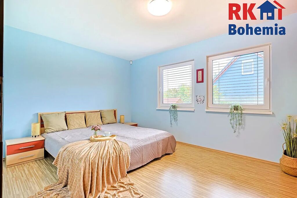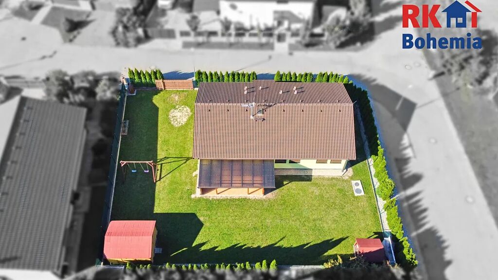 Dům je v dispozici 4+kk s celkovou plochou 122,49 m2. Celková výměra pozemku včetně zastavěné plochy činí 543 m2. Dům je jednopodlažní, přičemž se zde nachází zádveří (5,89 m2), 2 pokoje (13,49 m2 a 13,49 m2), ložnice (15,37 m2), koupelna (6,16 m2), obývací pokoj s jídelnou a kuchyňským koutem (39,56 m2), technická místnost s WC a umyvadlem (4,77 m2) a chodba (5,76 m2), ze které se dá dostat pomocí výsuvných schodů na částečně pochozí půdu. Z obývacího pokoje se lze dostat na prostornou terasu (18 m2).