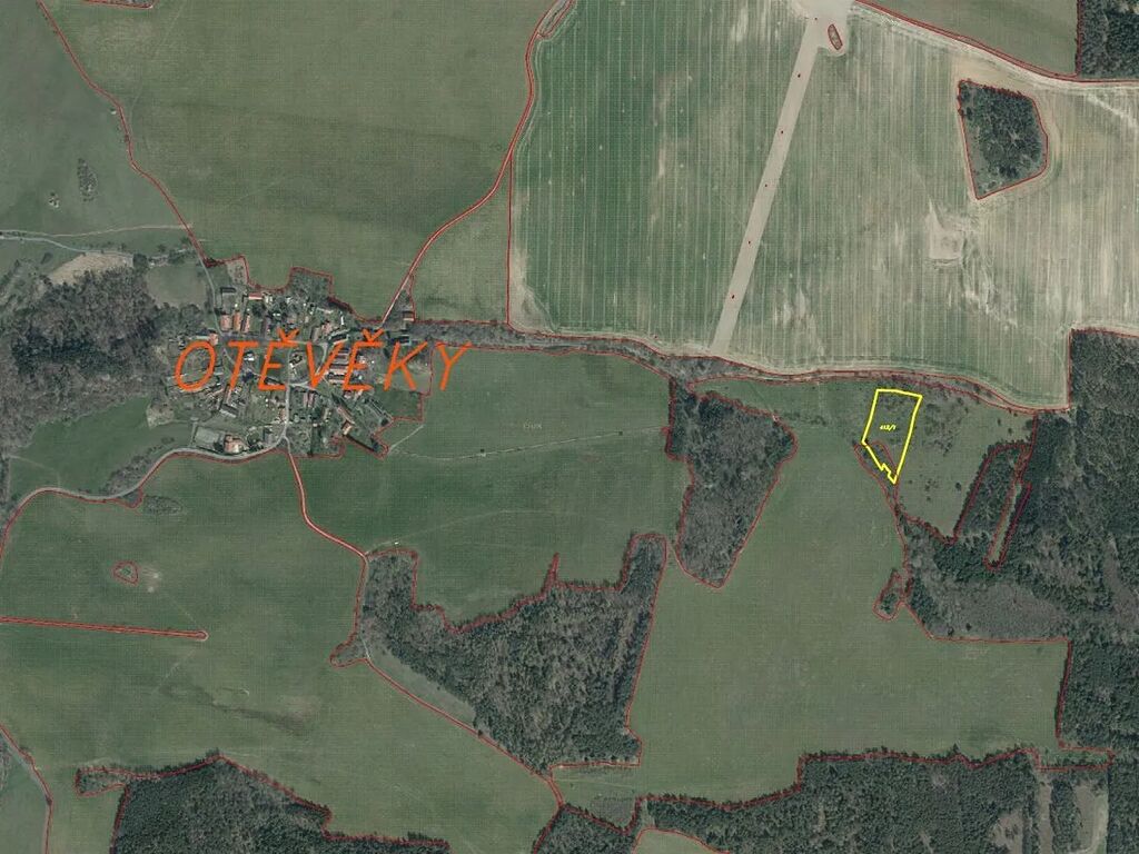Předmětem dražby je pozemek o výměře 7 261 m2 u obce Otěvěky. Pozemek se nachází