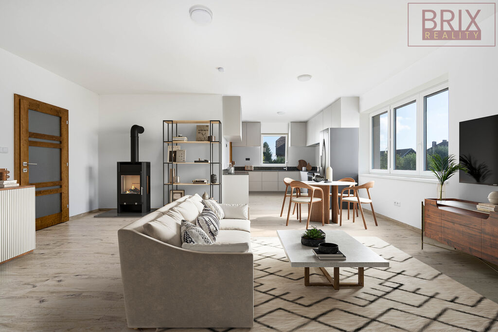 Nabízíme k prodeji krásnou novostavbu rodinného domu v Keblově o 124 m2 a dispozici 4+kk. Dům Vás jistě zaujme velkým obývacím pokojem s kuchyňským koutem a jídelnou, kde si budete užívat rodinný život a pohodu s přáteli. Domácí atmosféru tu jistě navodí i krbová kamna. Z obývacího pokoje je přímý vstup na zastřešenou terasu o 19 m2, kde budete moci trávit dlouhé letní večery. Také Vás zde jistě zaujme velká ložnice a dva dětské pokoje. V koupelně najdete vanu i sprchový kout a umyvadlo. Toaleta je samostatně. Druhou toaletu pak najdete v technické místnosti hned u vstupu. Dům je vytápěný podlahovým vytápěním pomocí tepelného čerpadla, takže už Vám jistě nebude zima od nohou. Dům má tepelně izolační trojskla, přípravu pro zabezpečovací systém s pohybovými čidly a také přípravu na venkovní kamery. Tepelné čerpadlo může být ovládané přes aplikaci. Voda je veřejná, kanalizace je svedena do vlastní čističky. Pozemek má celkem 957 m2, takže místa tu budete mít opravdu dost. Je zde také počítáno se dvěma parkovacími stáními. Součástí ceny je také kuchyňská linka na míru, oplocení pozemku a zámková dlažba před domem a na parkovacích místech. V širším okolí najdete veškerou občanskou vybavenost, na nájezdu na D1 jste jen za 7 minut. Do přírody, za relaxem i sportem budete moci chodit do nedalekých místních lesů a nebo třeba k vodní nádrži Švihov. Nenechte si utéct tuto nabídku a přijďte se podívat na prohlídku.