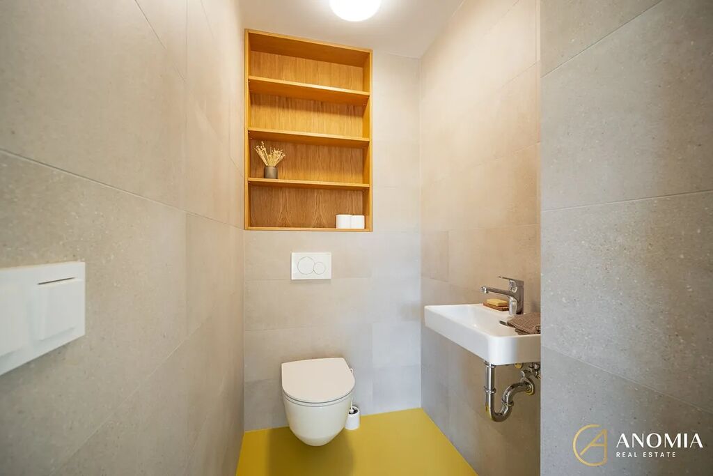 Přízemí: obývací prostor s přípravou na kuchyň s ostrůvkem a spíží, pracovna/hostinský pokoj s vlastní koupelnou, technická místnost, vstup, WC.