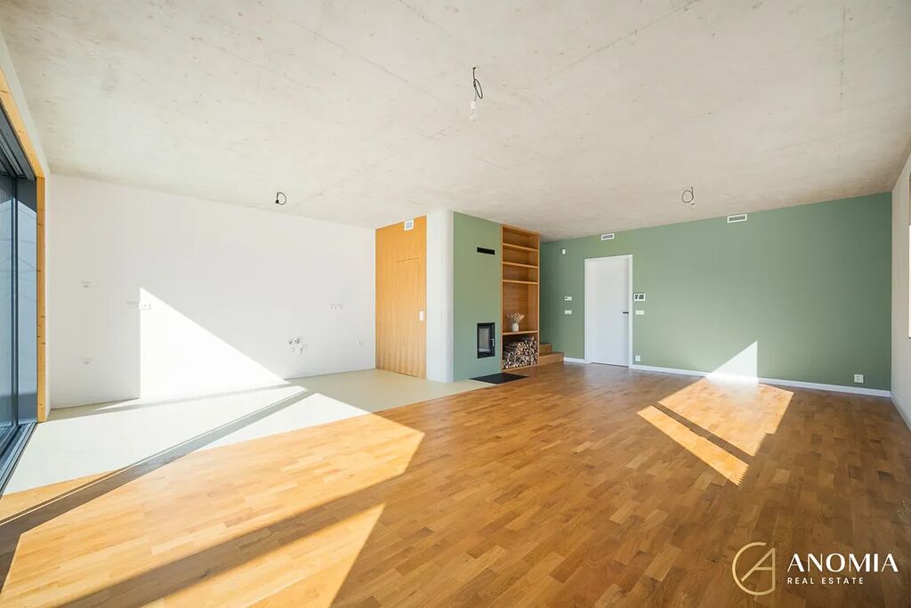 Užitná plocha interiéru cca 157 m² (bez terasy a příslušenství); dům celkem cca 196 m². Z obývací části je bezschodový vstup na modřínovou terasu 39 m². Dále dílna + sklad 40 m² a kryté parkování 39 m² pro 2 vozy se zelenou střechou. Pozemek 1 062 m² se soukromím a ideální orientací ke slunci.