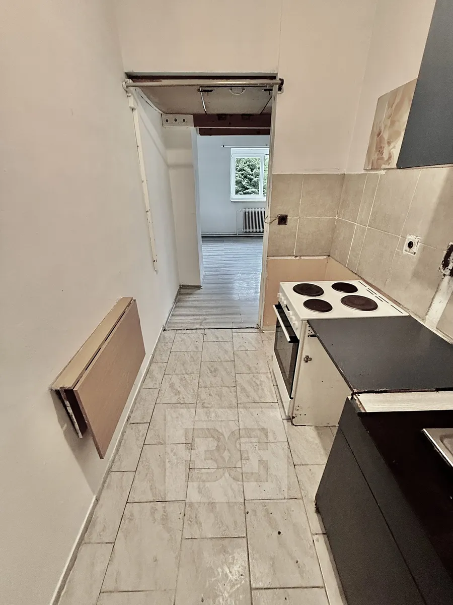 Nabízíme Vám k prodeji byt určený k celkové rekonstrukci, 1+kk s užitnou plochou 27,3 m², situovaný v 1NP domu bez výtahu, v ulici Plzeňská. Byt se sestává ze vstupní chodby, koupelny se sprchovým koutem a toaletou a obývacího pokoje s kuchyňským koutem. Vysoký strop umožňuje vestavbu patra na spaní. Okno orientované do klidného vnitrobloku.
