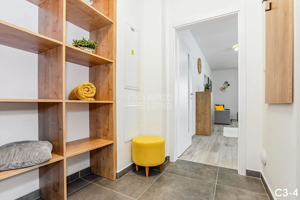 Nabízíme k prodeji kompletně vybavený apartmán o dispozici 2+kk a celkové ploše 54 m², který je součástí prestižního rezidenčního projektu Korzo Lipno. Byt se nachází ve 2. nadzemním podlaží novostavby z roku 2024 (záruka do 3/2028) a splňuje vysoké standardy moderního bydlení. Součástí jednotky je prostorný balkon o velikosti 5,5 m² a samostatná komora v suterénu domu.