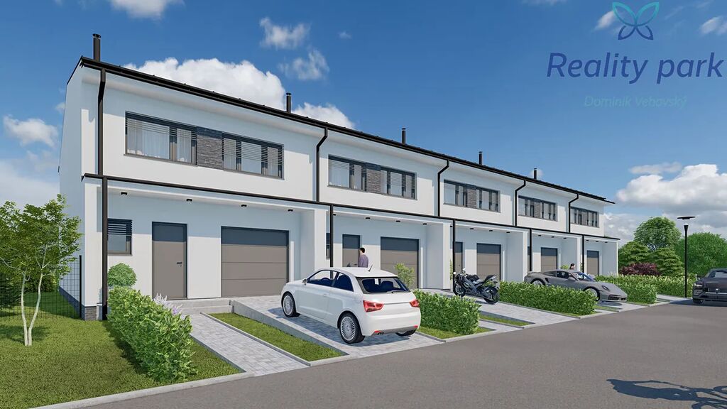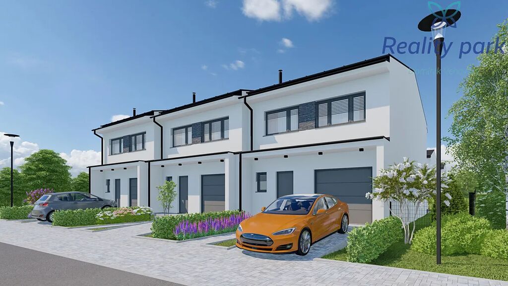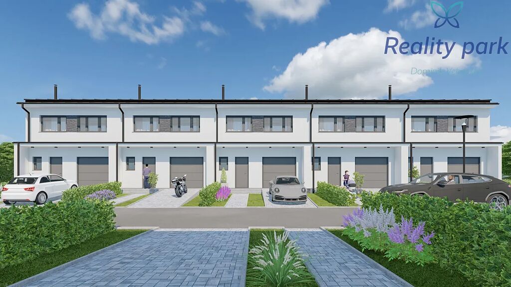 Každý dům má vlastní pozemek zahrady (pozemky s výměrou od 230 m2), před domem pak dvě parkovací stání.
