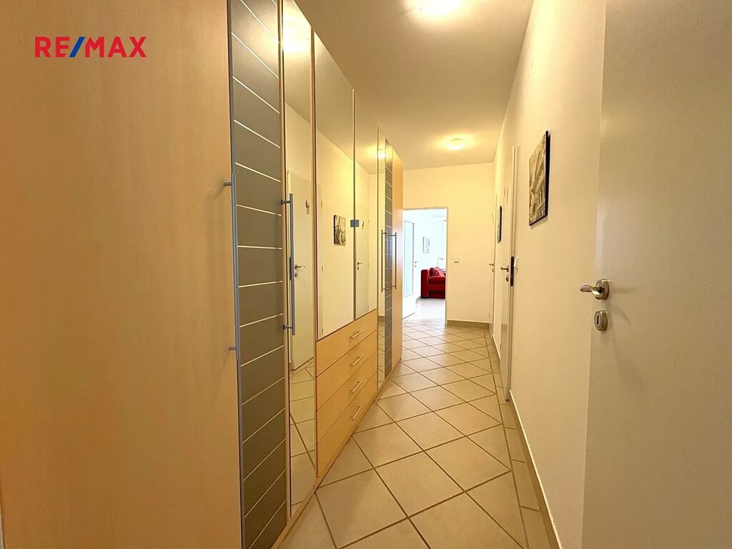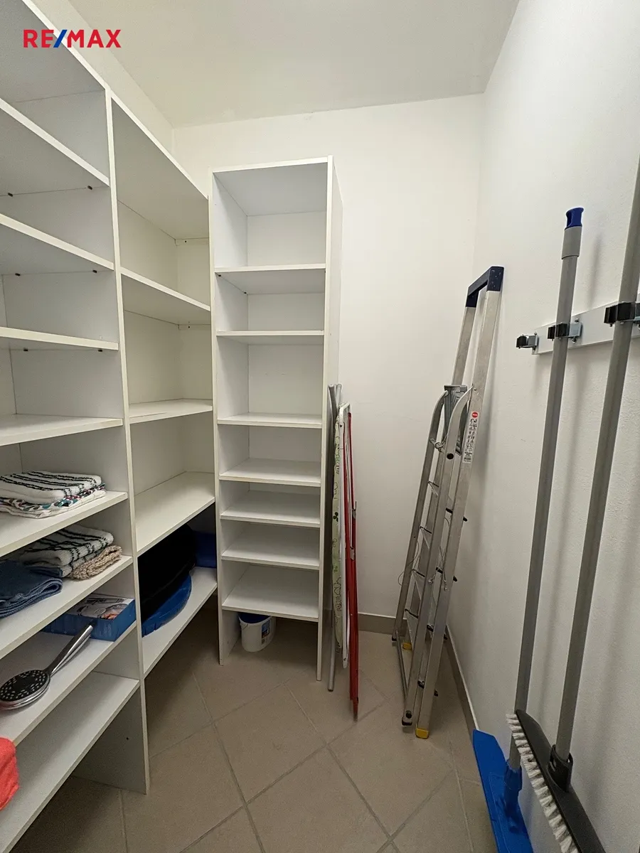Interiér bytu je tvořen vstupní chodbou s vestavěnou skříní, velkým obývacím pokojem se vstupem na balkon a s kuchyňským koutem (kompletně zařízená kuchyňská linka s vestavěnými spotřebiči), 2. pokojem (ložnicí) s druhým balkonem, koupelnou s vanou, samostatným WC a komorou.