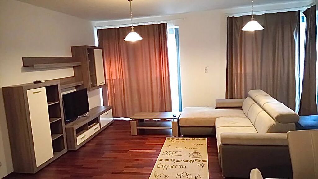 Byt je zařízený. Kuchyň je vybavená kuchyňskou linkou a elektrospotřebiči.