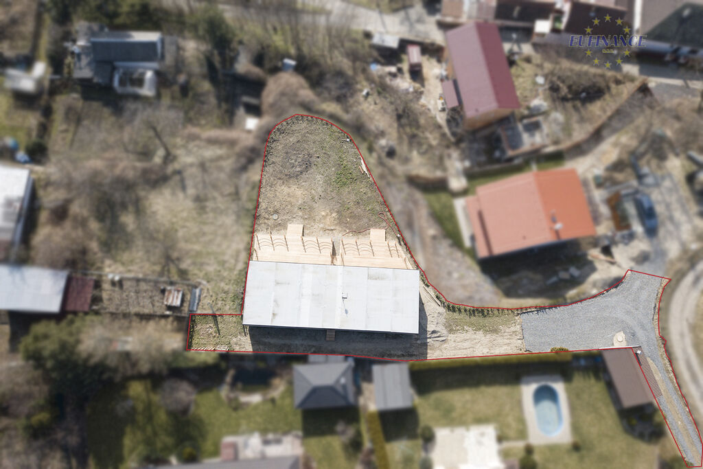 Dvojdům disponuje celkem dvěma zrcadlově stejnými bytový jednotkami 3+kk se společnou vstupní chodbou a nachází se na rovinatém pozemku s překrásným výhledem do zeleně na horu Hostibejk a rovněž nabízí maximální soukromí. Na pozemek je vjezd přes bránu na dálkové ovládání, kde jsou před domem parkovací stání pro 4 auta (každý byt má dvě parkovací stání). Na zahradě jsou položeny zatravňovací pasy a vyseta tráva vč. okrasných bobkovišní. Další parkovací místa jsou možné využít před vjezdem na pozemek. Každá bytová jednotka má vlastní půlku zahrady, velké zamykací úložné prostory pod terasou a rovněž ve společném velkém zahradním domku, který se nachází za domem. Na pozemku je dále k dispozici vsakovací jímka s čerpadlem pro využití dešťové vody k zalévání zahrady. Pozemek je po celém obvodu osázen bobkovišněmi a již 1,5 roku osázen trávou. Od parkovacích stání jsou kolem celého domu s terasami položeny dekorační nášlapné kameny.