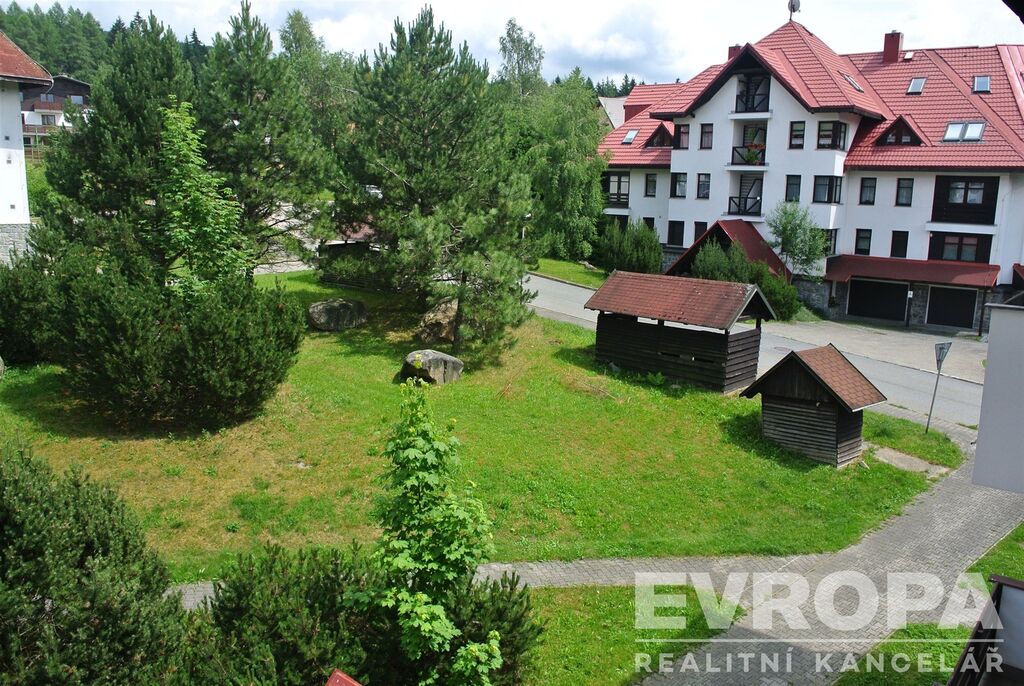 Exkluzivně nabízím k prodeji byt 1+kk v osobním vlastnictví o rozloze 34 m2 v Harrachově, části nazývané Klondajk. Byt se nachází ve třetím podlaží, resp. druhém patře bytového domu. Byt je vybaven kuchyňskou linkou, jídelním stolem se židlemi, sedací soupravou, televizorem a sklápěcím dvoulůžkem, vestavěnou skříní. Sociální zařízení tvoří standartně WC, umyvadlo a sprchovým kout. Topení a ohřev TUV je plynovým kotlem. Byt má balkón s výhledem do parčíku mezi domy. K bytu patří sklepní kóje. Parkování u domu. 100 m od domu se u hypermarketu Norma napojíte na silnici vedoucí do Polska, kde najdete také širokou nabídku obchodů, tržišť a také možností sportovního vyžití.