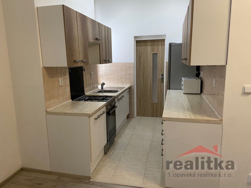 Nabízíme pronájem velkého bytu 2+kk 66 m2 se zahradou, Opava, ul. Olomoucká. Byt je situován v 1. poschodí cihlového domu bez výtahu. V bytě je velký pokoj s kuchyňským koutem vybaven plynovým sporákem a digestoří, ložnice (dětský pokoj), koupelna s vanou a přípravou na pračku, samostatná toaleta, komora a vstupní chodba. Celý byt má nová eurookna včetně žaluzií. Vytápění bytu je samostatným kondenzačním plynovým kotlem. Za domem je velká zahrada s altánem. Byt se nabízí k dlouhodobému pronájmu. Měsíční nájem je 13.000,- Kč + služby cca 1.500,- Kč (voda a poplatky), elektřinu a plyn si hradí nájemce sám. Provize RK je jednorázově 13.000,- Kč. Majitelé požadují při podpisu smlouvy kauci ve výši 26.000,-Kč. V blízkosti domu je obchod Lidl, zastávka MHD, vlaková zastávka, školka, školka a nemocnice. Byt je již volný a dá se okamžitě nastěhovat. Zájemci o prohlídku dle domluvy s panem Hořínkem.