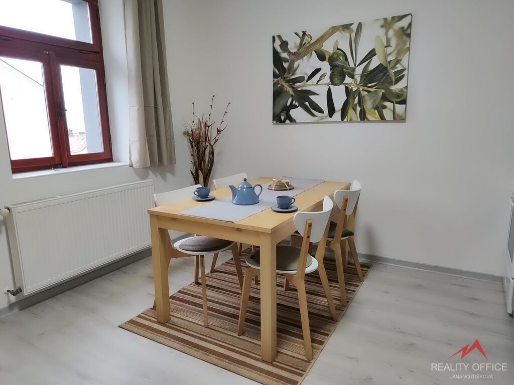 Kompletně zařízený, nově zrekonstruovaný byt 2+kk o velikosti 54 m2, v krásné a klidné lokalitě Děčína na Starém Městě. Byt se nachází ve 3.nadzemním podlaží. Okna bytu jsou orientována na jih. Součástí bytu je balkon. Vytápění + TUV - plynový komb.kotel. Byt je vybaven kuchyňskou linkou, sporákem, digestoří, lednicí s mrazákem, automat.pračkou a mikrovlnnou troubou., obývací pokoj skříní, sedací soupravou s konf. a TV stolkem. V kuchyni je jídelní stůl se židlemi a další úložné prostory. V bytě jsou přípojky na tel. linku, kabelovou TV, internet. Dům je situován cca. 15 min. chůze od centra města, autobusové zastávky cca. 20 m od domu v obou směrech. Parkování před domem nebo na parkovišti. Úklid domu je zajištěn a platba je obsažena v nájmu bytu. Byt je ve vynikajícím stavu. Vratná kauce 2x nájemné. Nájemné 12.000,- + zálohy na služby - vodné a stočné a elektro spol. prostor. V bytě a v celém domě se NEKOUŘÍ. Volné ihned.