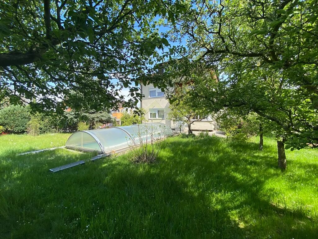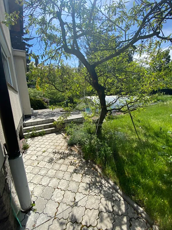 K domu náleží zahrada o vel. 1.217 m2 s krytým bazénem, terasou a 2 garážemi.
