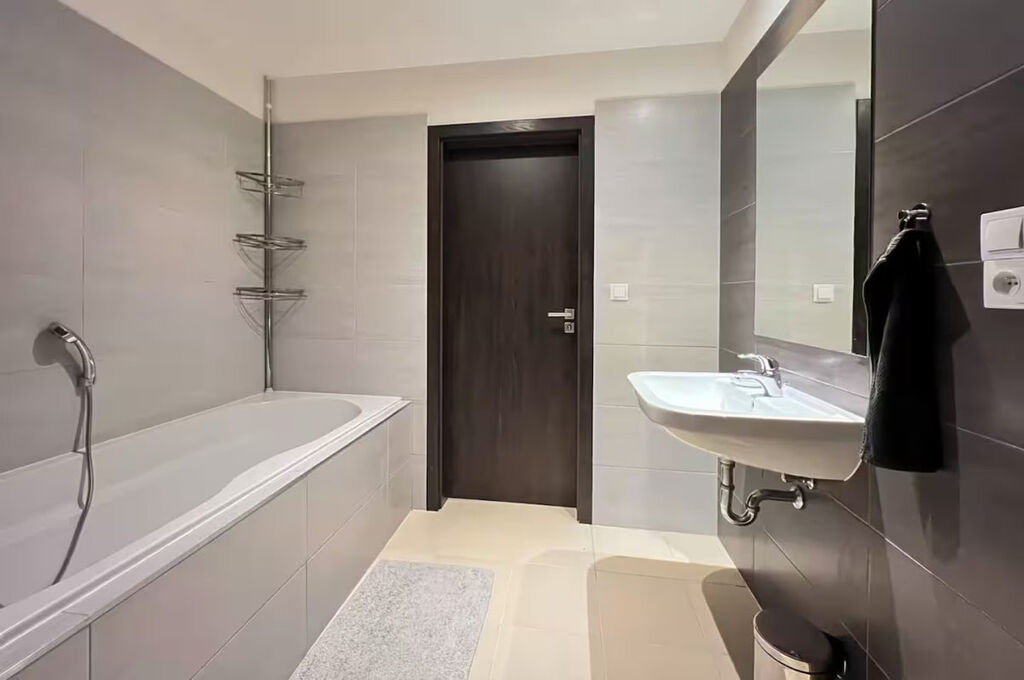 Byt je plně vybavený dle fotografií, včetně klimatizace. Kuchyňská linka disponuje lednicí, myčkou, troubou, varnou deskou a mikrovlnnou troubou. Obývací část je vybavena pohovkou, konferenčním stolkem a jídelním koutem. V ložnicích zůstává postel, šatní skříň a pracovní stůl. V koupelně je vana, umyvadlo a toaleta.