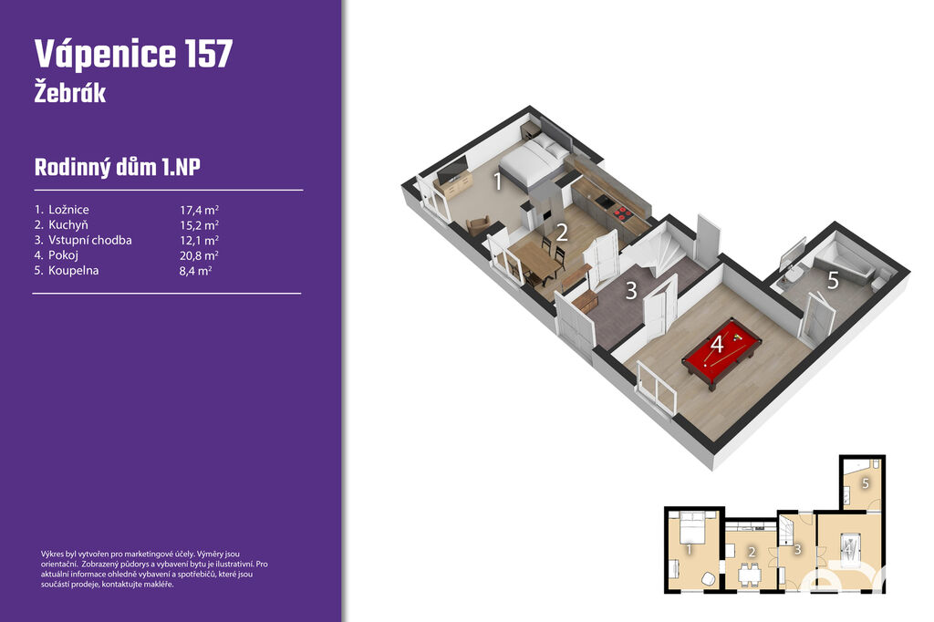 Žebrák nabízí kompletní občanskou vybavenost – mateřskou i základní školu, obchody, poštu, lékárnu, zdravotní středisko i sportoviště. Větší město Hořovice s nemocnicí a supermarkety je vzdáleno jen pár minut. Pokud hledáte místo, kde budete mít na dosah přírodu, historii i pohodlnou dostupnost do města, tenhle dům je ideální volbou. Zavolejte si o prohlídku a přijďte se přesvědčit na vlastní oči.