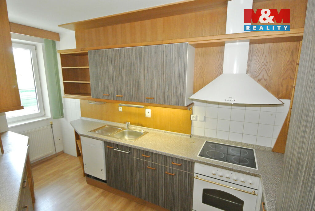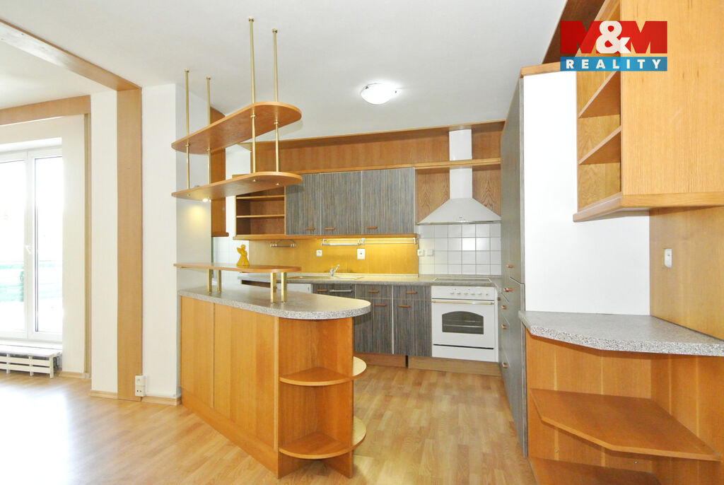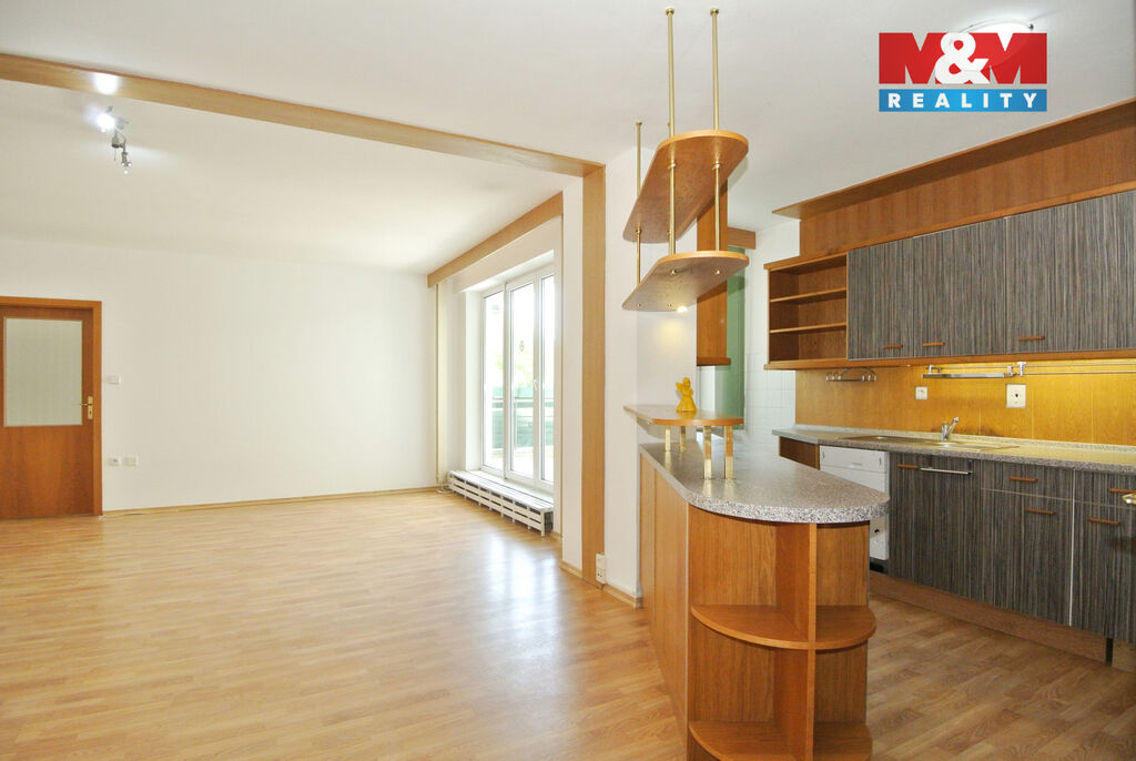 Byt se skládá ze vstupní haly, ze které se vchází do tří samostatných neprůchozích pokojů a dále do prostorného obývacího pokoje s kuchyňským koutem a vstupem na terasu. Z prostorného obývacího pokoje je přístup do čtvrtého neprůchozího pokoje. Byt má dvě koupelny, z nichž jedna je vybavena sprchovým koutem, umyvadlem a toaletou.