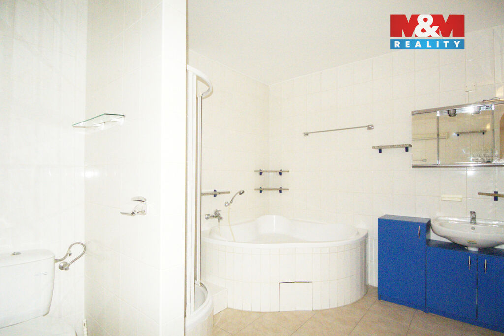 Druhá koupelna je vybavena vanou, sprchovým koutem a prostorem pro pračku a zároveň je vybavena také bidetem a toaletou.