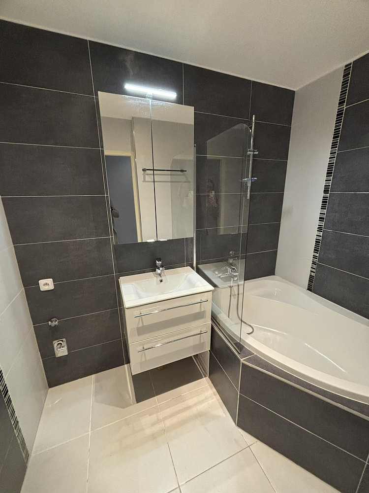 Pronájem kompletně zrekonstruovaného, nezařízeného bytu 3+kk 63m² s lodžií, v lukrativní lokalitě Ostravy Poruby na ulici Svojsíkové. Klidné prostředí se vzrostlými stromy. Bytová jednotka umístěna v 4NP. Nová elektroinstalace, zděná velká koupelna, nové plovoucí podlahy, sádrokartónové stropy s bodovým osvětlením. Kuchyň s moderní bílou kuchyňskou linkou v lesku s multifunkční troubou a plynovým ohřevem. A nerez digestoří. K dispozici lednice s mrazícím boxem zn.LG. Obývací pokoj s krásným šedým kobercem, propojen s kuchyní a chodbou do tvaru U. Další dva pokoje neprůchozí. Vetší pokoj s lodžií směřující do dvora se zelení. Nové interiérové dveře ve všech pokojích, koupelně i WC. Ve všech oknech sítě proti hmyzu. Chodba s moderní předsíňovou skříní. Na podlaze dlažba. Velká nová koupelna s rohovou vanou a skleněnou zástěnou, umyvadlem a moderním bílým koupelnovým nábytkem. Velká zrcadlová skříňka a elektrický topný žebřík. Sádrokartonový strop s bodovým osvětlením. WC samostatně. Volný od 1.listopadu. Byt bude vybílen na bílo.Momentálně probíhá rekonstrukce lodžií. Ukončena koncem října. Nájem 12.000,- Kč + služby na 3 osobu 4.916,- tj.( TUV, SUV, teplo, úklid spor.prostor, výtah, elektřina spor.prostor, společná TV anténa ). Každá další osoba pouze SV a TUV navíc. Elektřina a plyn samostatně. K dispozici internet od fa Vodafon. Vratná jistina 24.000,-Kč. Provize RK 16.000,-. V okolí veškerá občanská vybavenost. MHD 2 minuty chůze.
