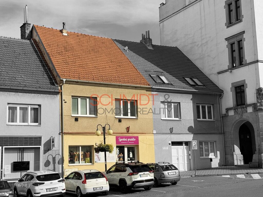 - V přízemí se nachází obchodní prostor o výměře 76 m², který má přímý vstup z náměstí. Prostor se sestává ze 4 místnosti + koupelna a WC. Aktuálně je pronajatý dlouholetému stabilnímu nájemníkovi.