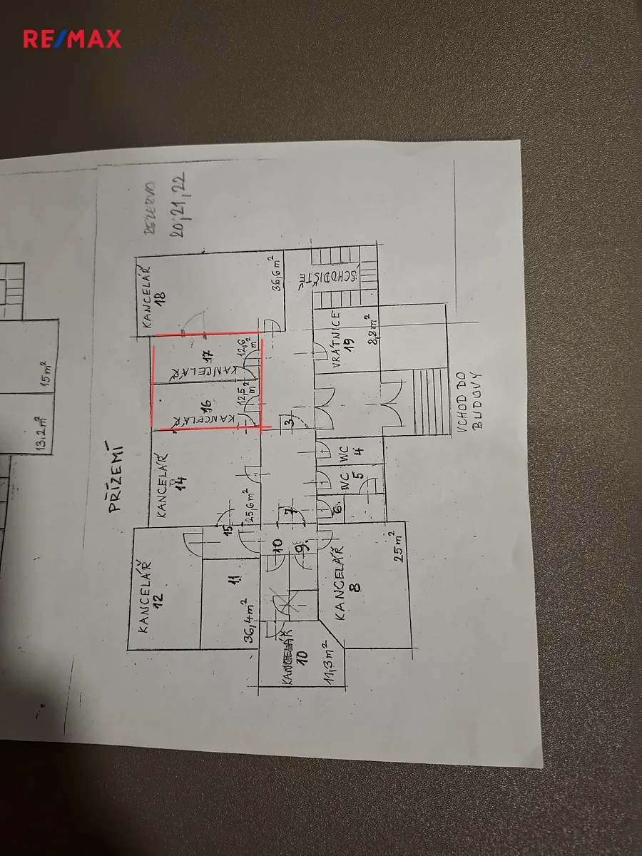 Kanceláře se nachází v 1. nadzemním podlaží. K dispozici je společné sociální zařízení. Budova je střežená alarmem. Zastávka MHD je vzdálená pouhé 2 minuty chůze.