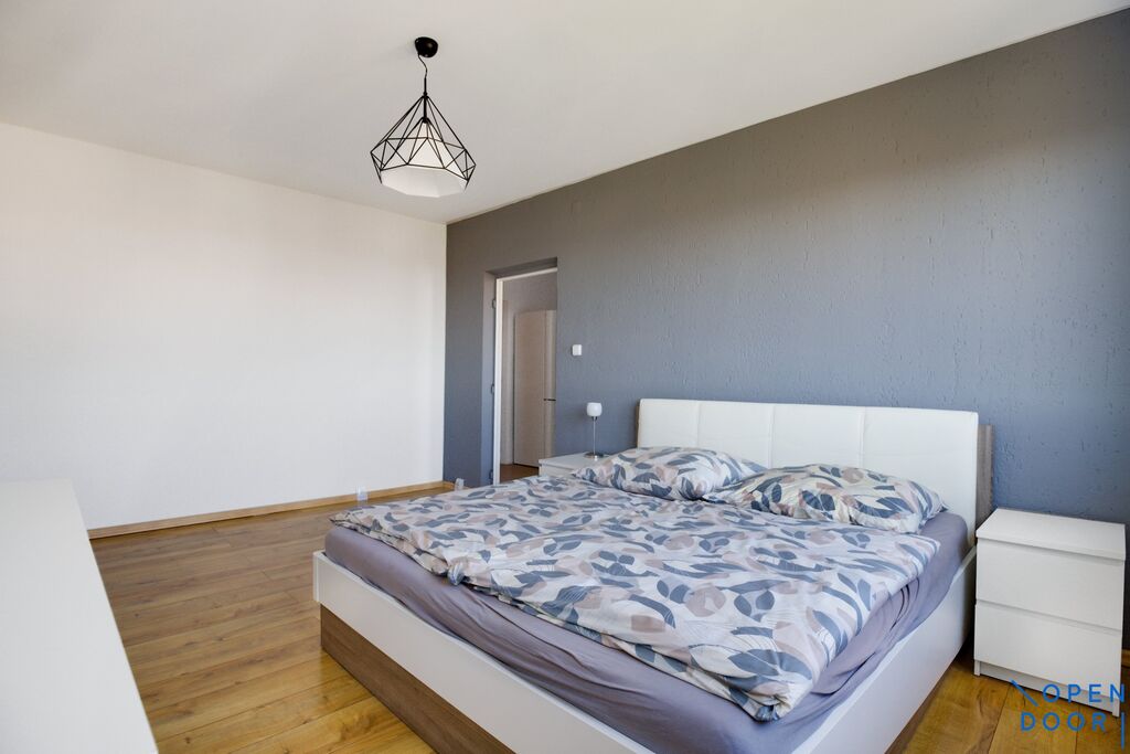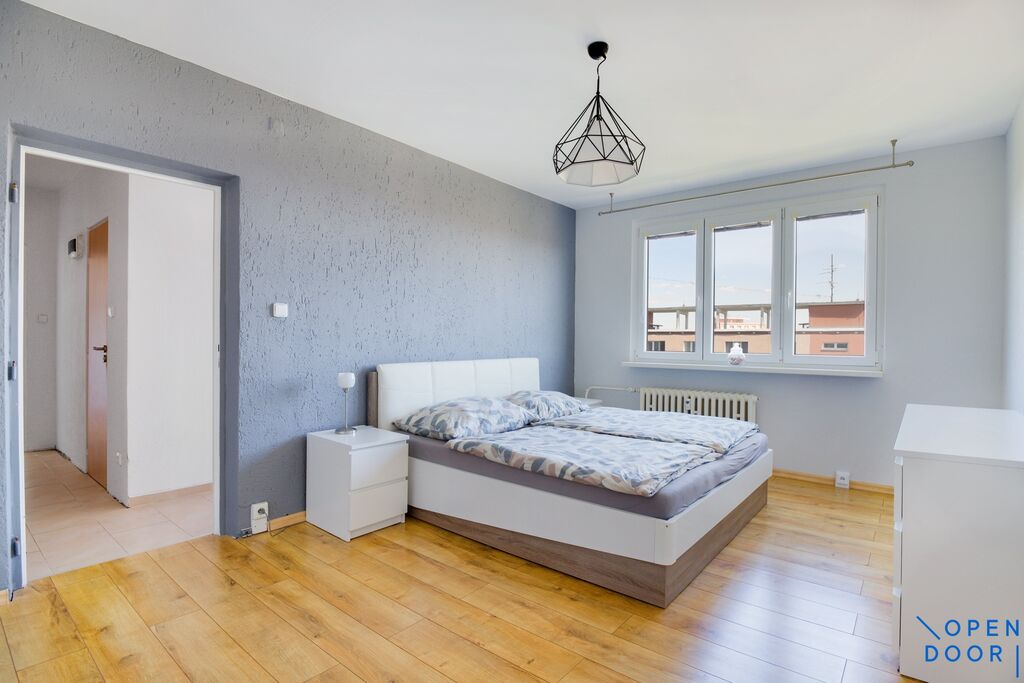 Byt prošel v minulosti zásadní rekonstrukcí, disponuje dvěma samostantnými pokoji, prostornou chodbou, koupelnou a kuchyní. Ve zděné koupelně je umístěna rohová vana se sprchovou zástěnou a toaleta. Velmi vkusně zařízena kuchyňská linka byla namontovaná na míru, její součástí jsou vestavěné spotřebiče značky Beko (trouba, varná deska, dále lednice a myčka nádobí). Byt se pronajímá částěně vybavený v obývacím pokoji zůstavá k dispozici pohovka, konferenční stolek a lenoška. Na podlahách jsou dřevěné parkety, plovoucí podlaha a keramická dlažba, okna jsou plastová a všechna mají nainstalové horizontální žaluzie. K jednotce náleží sklepní kóje.