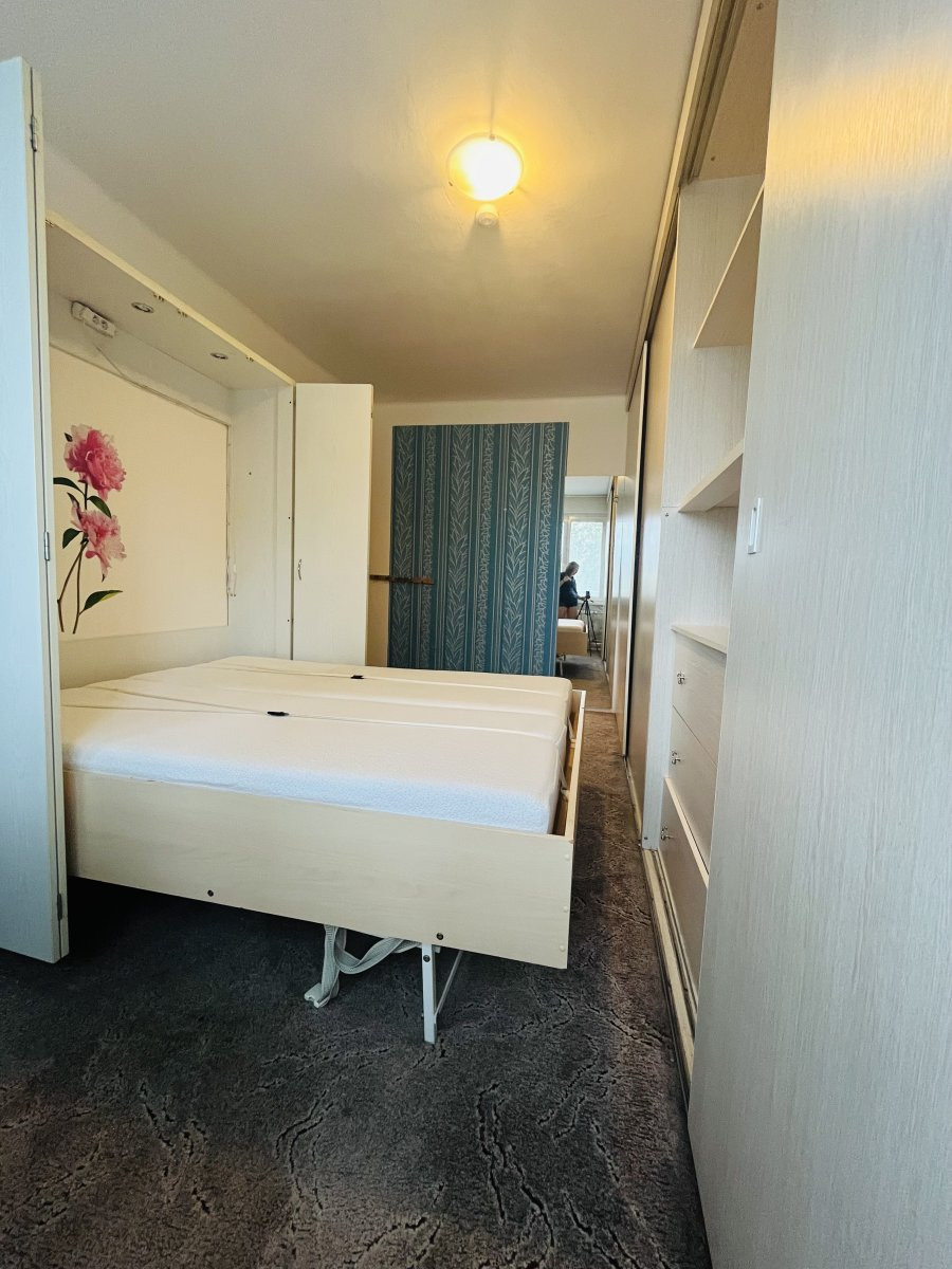 Jednotka disponuje dvěmi neprůchozími pokoji, kde v jednom z pokojů se také nachází vestavěné skříně a vestavěná postel, která se ukládá do další skříně. V předsíni je vestavěná skříň také.