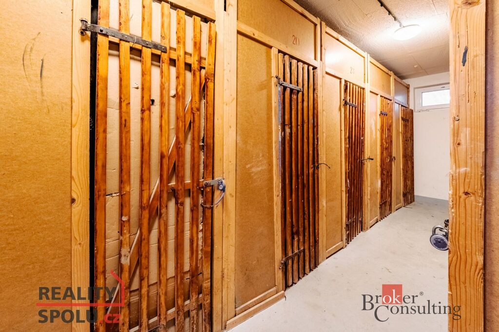 Byt se skládá ze tří neprůchozích pokojů, prostorné předsíně s chodbou, kde jsou umístěny vestavěné skříně, kuchyně, koupelny a samostatné toalety. K bytu náleží sklepní kóje (2 m2) a dále je možnost využívat společnou kolárnu. Orientace bytu je na východ. Dům prošel kompletní revitalizací – zateplení, výměna oken za plastová, nový výtah, úprava společných prostor. Díky své poloze, kdy je byt ze všech stran obklopen dalšími jednotkami, nabízí velmi nízké náklady na vytápění. Fond oprav činí cca 2.800 Kč.