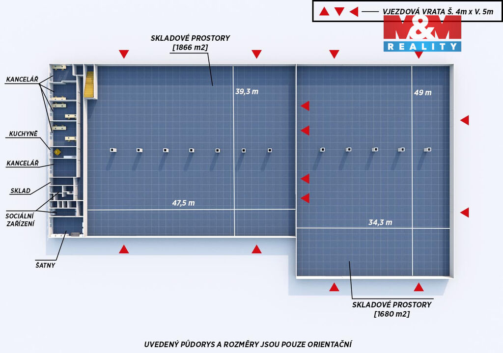 Nabízíme k pronájmu prostornou halu o užitné ploše 1866 m² v obci Volduchy, ideálně situovanou na okraji obce s rychlým přístupem na dálnici D5 (pouze 8 minut na Mýto). Hala je součástí smíšené konstrukce a nabízí samostatný vjezd s parkovací plochou. V přízemí se nachází kanceláře a sociální zařízení – celkem 5 kanceláří, kuchyňka, sklad a šatny. Vjezdová vrata mají rozměry 4x5 metrů, podlaha z drátkobetonu s nosností 2,5 t/m². Měsíční nájem činí 190 000 Kč + DPH + energie, což zahrnuje i údržbu příjezdové plochy. Nájem kanceláří a zázemí je 145 Kč/m² + DPH + energie. Objekt je ihned k dispozici, ve velmi dobrém stavu. Ideální pro skladovací účely, či výrobu. Pro další informace kontaktujte makléřku.