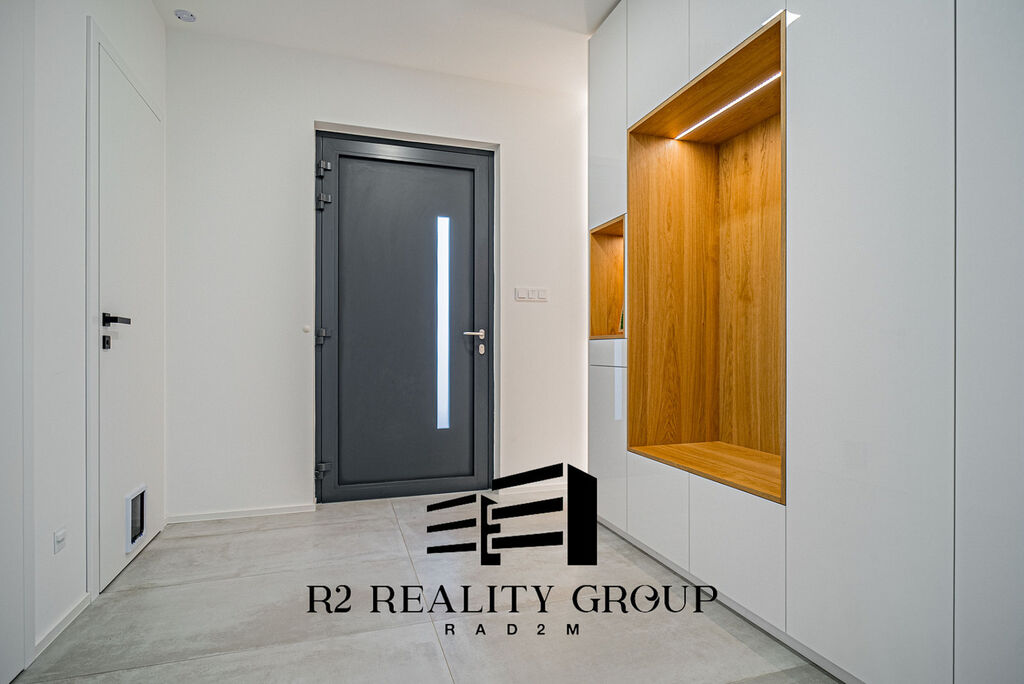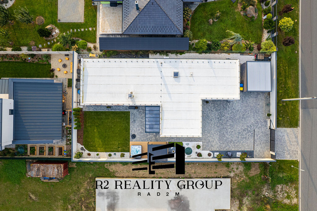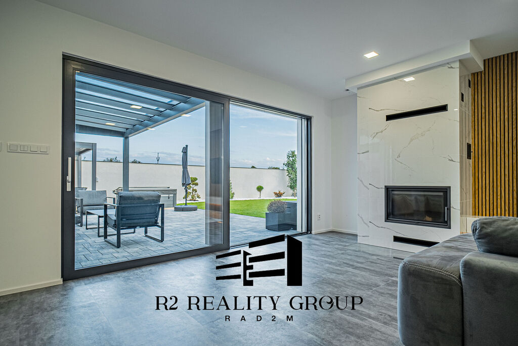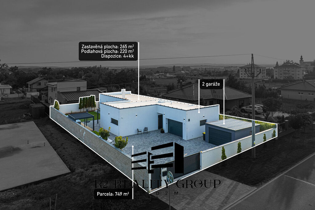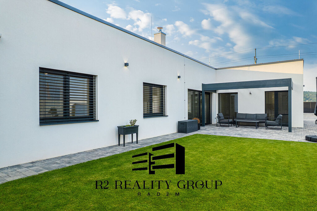 Realitní kancelář R2 nabízí k prodeji moderní novostavbu v Kostelci na Hané. Novostavba o dispozici 4+kk a pozemkem 749m² má dvě koupelny, tři toalety, technickou místnost a dvě garáže. Každý pokoj má svou walk-in šatnu. V domě je vinylová lepená podlaha, velkoformátové obklady, stropní klimatizace Samsung, indukční deska Bora. Vytápění domu je řešeno tepelným čerpadlem NIBE s podlahovým vytápěním v celém domě včetně garáže, příjemnou atmosféru vytvoří krb na dřevo. V obývacím pokoji je hliníkový portál o délce čtyři metry. Vstup na terasu je z obývacího pokoje i ložnice. Veškerý nábytek je dělaný na míru. Stavba byla zkolaudována koncem roku 2023. Vlastní vrtaná studna. Celkové měsíční náklady na dům jsou 5 tisíc Kč.