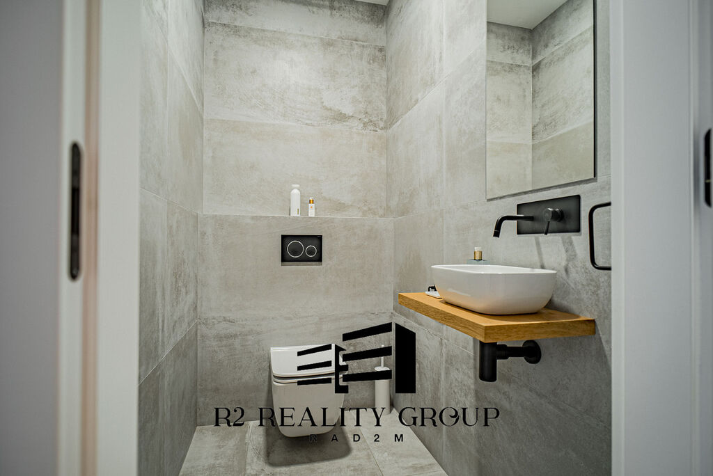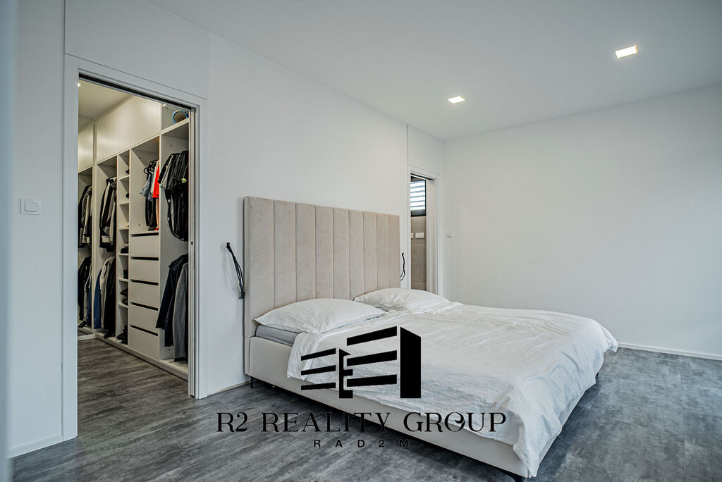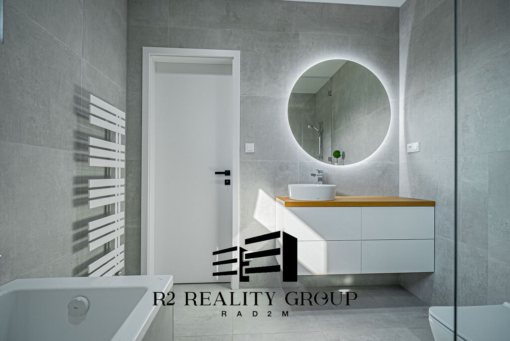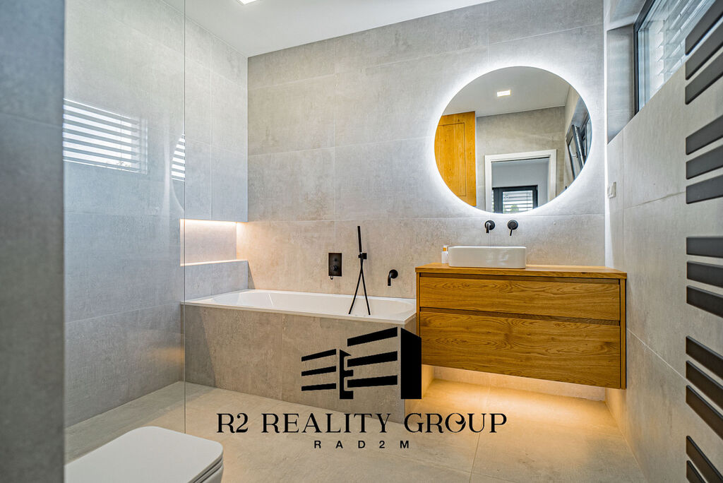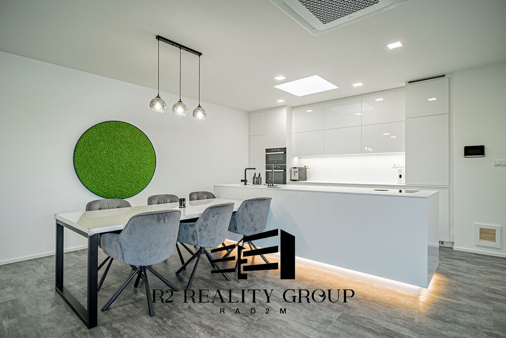 Realitní kancelář R2 nabízí k prodeji moderní novostavbu v Kostelci na Hané. Novostavba o dispozici 4+kk a pozemkem 749m² má dvě koupelny, tři toalety, technickou místnost a dvě garáže. Každý pokoj má svou walk-in šatnu. V domě je vinylová lepená podlaha, velkoformátové obklady, stropní klimatizace Samsung, indukční deska Bora. Vytápění domu je řešeno tepelným čerpadlem NIBE s podlahovým vytápěním v celém domě včetně garáže, příjemnou atmosféru vytvoří krb na dřevo. V obývacím pokoji je hliníkový portál o délce čtyři metry. Vstup na terasu je z obývacího pokoje i ložnice. Veškerý nábytek je dělaný na míru. Stavba byla zkolaudována koncem roku 2023. Vlastní vrtaná studna. Celkové měsíční náklady na dům jsou 5 tisíc Kč.
