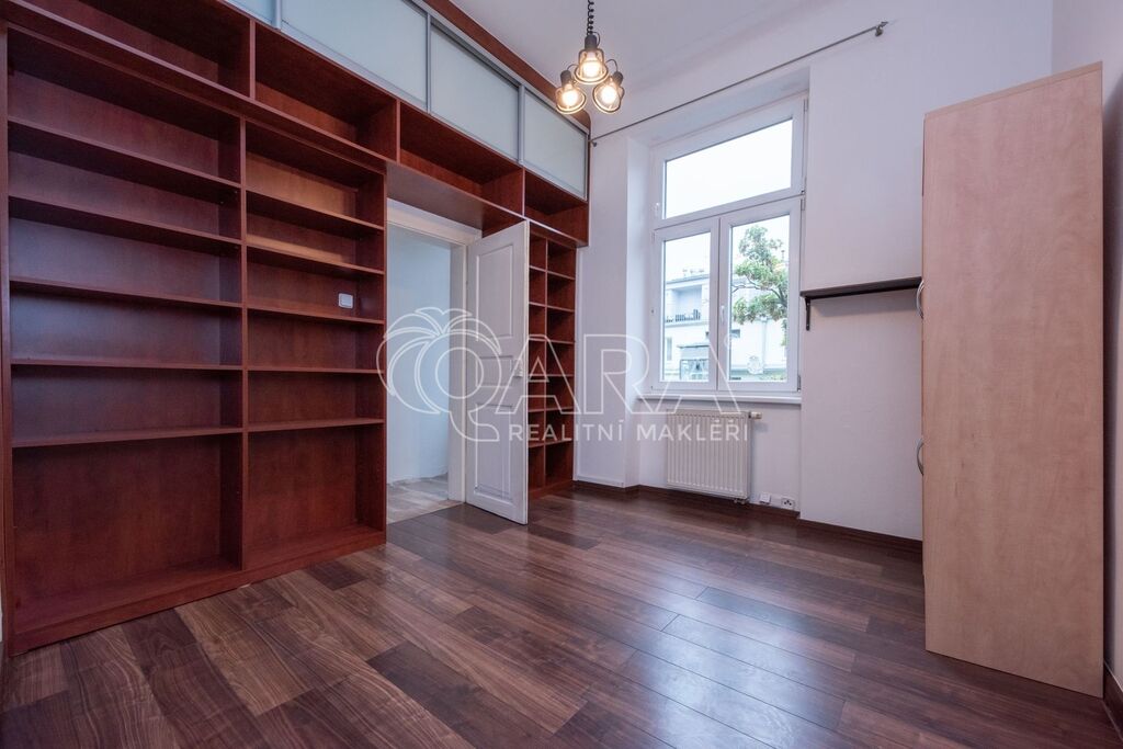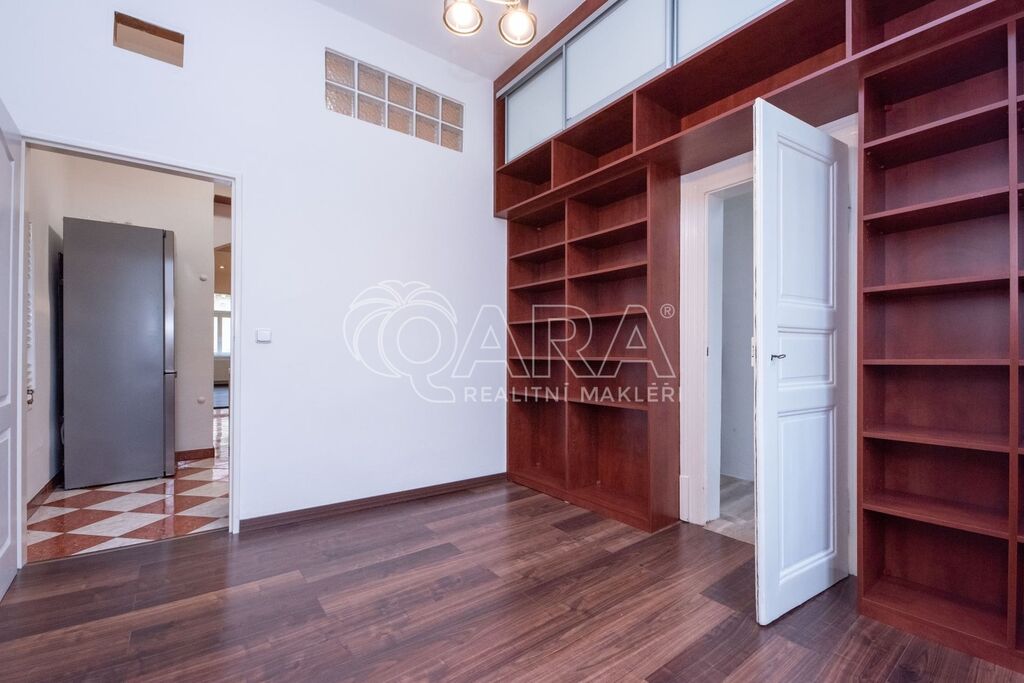 Zprostředkuji Vám pronájem prostorného a světlého bytu, dispozice 5+kk, o výměře 146 m2, na pražských Vinohradech, v ulici Mánesova. Byt tvoří pět pokojů - průchozí obývací pokoj a čtyři neprůchozí ložnice. Kuchyňský kout je umístěn odděleně, v prostorné hale. Dva pokoje mají výhled do ulice Mánesova, dva do vnitrobloku. Kuchyňská linka je vybavena vestavnými spotřebiči - myčkou, elektrickou varnou desku + pečící troubu, mikrovlnnou troubou a digestoří. Součástí je zcela nová volně stojící lednice. Benefitem tohoto bytu jsou dvě koupelny, v jedné z koupelen je vana, v druhé sprchový kout. Byt má dvě WC (jedno v koupelně, druhé umístěno samostatně). Byt má nadstandartní úložné prostory - vestavné skříně + 2x šatna a veliký úložný prostor s pochozí podlahou nad halou bytu. Dále k bytu patří komora na chodbě (např. na lyže/kolo). Vytápění bytu a ohřev vody zajištuje plynový kotel. Byt se nachází ve 4. patře činžovního domu s výtahem a pronajímán jako částečně zařízený. Nábytek, který vidíte na fotkách je možno po dohodě odstranit. Výborná dopravní dostupnost: zastávka tramvají Vinohradská tržnice 5 min chůze, stanice metra Jiřího z Poděbrad (trasa A) cca 7 minut pěšky. Dobrá občanská vybavenost: oblíbený park Riegrovy sady minuty od domu, v místě nákupní galerie Pavilon, obchody, restaurace, kulturní vyžití - Divadlo na Vinohradech, Divadlo u Hasičů, plavecký bazén (Sokol v Riegrových sadech). Byt je určen k dlouhodobému pronájmu (min. 12 měsíců). Měsíční náklady: nájemné + záloha na služby 1.000 Kč za každou osobu + přepis plynu a el. energie na nájemce. Jistota + odměna zprostředkovatele. Ráda Vám poskytnu více informací o této nabídce.