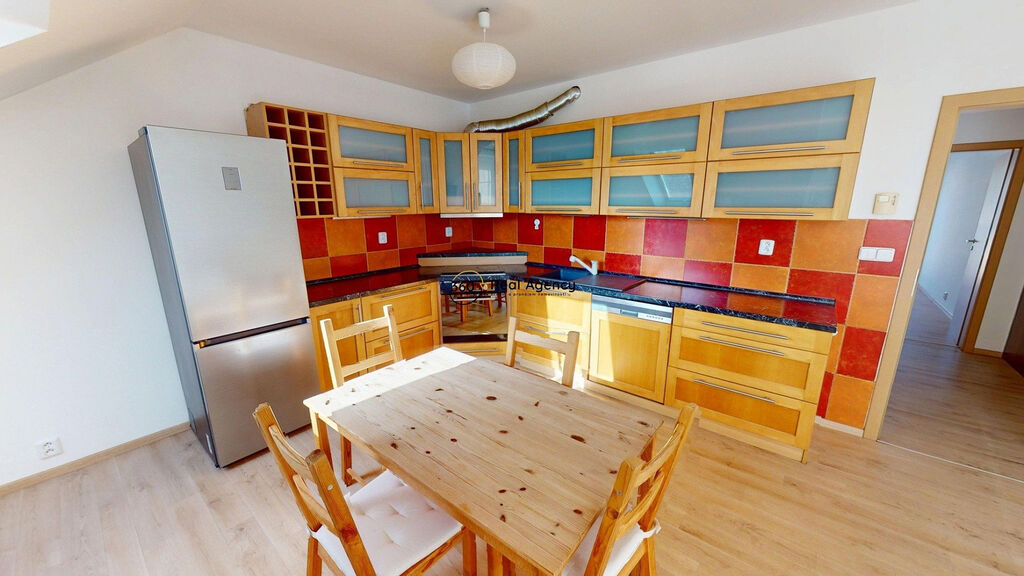 Nabízíme k pronájmu světlý byt 2+kk o celkové ploše 73 m², umístěný ve 3. patře bytového domu na Náměstí Emila Kolbena ve Strančicích. Součástí pronájmu je terasa 6,1 m² s příjemným výhledem a prostorný sklep 5,4 m².