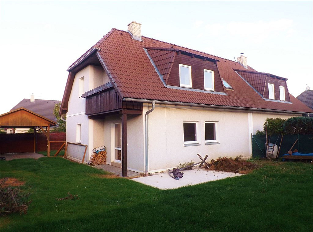 Nabízíme exkluzivně k pronájmu nezařízený prostorný patrový rodinný dům s balkonem (jedná se polovinu dvojdomu typu CANABA) a zahradou cca 300 m².
