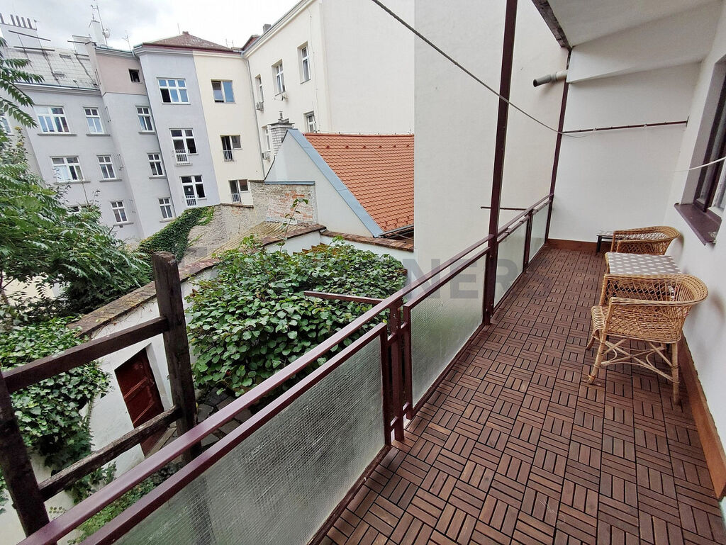 Velký balkon orientovaný do vnitrobloku a zahrad