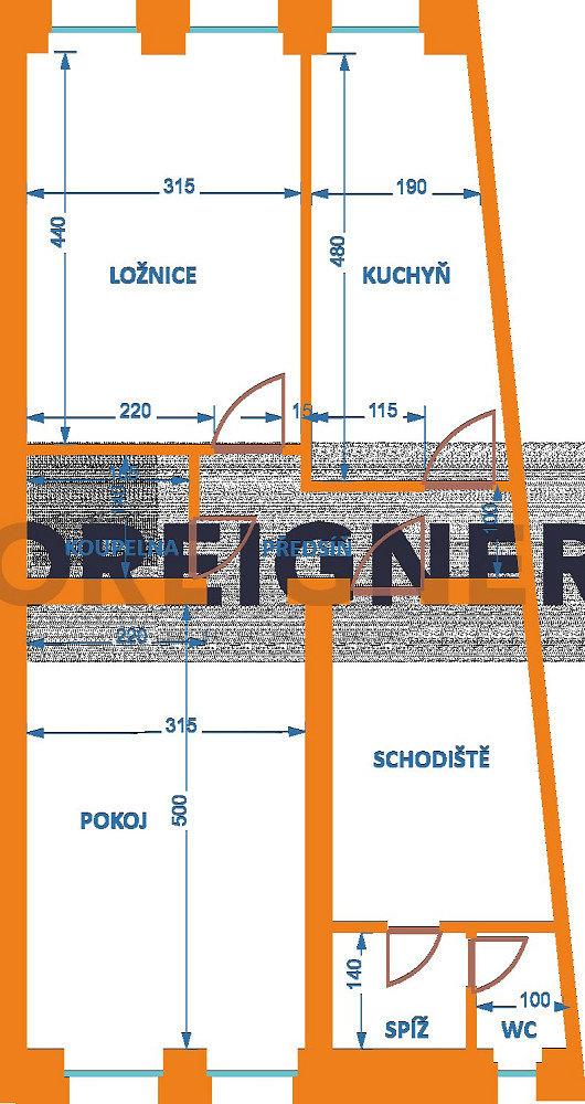 Dispozice: 2+1 – neprůchozí ložnice, obývací pokoj, kuchyně, koupelna, technická místnost