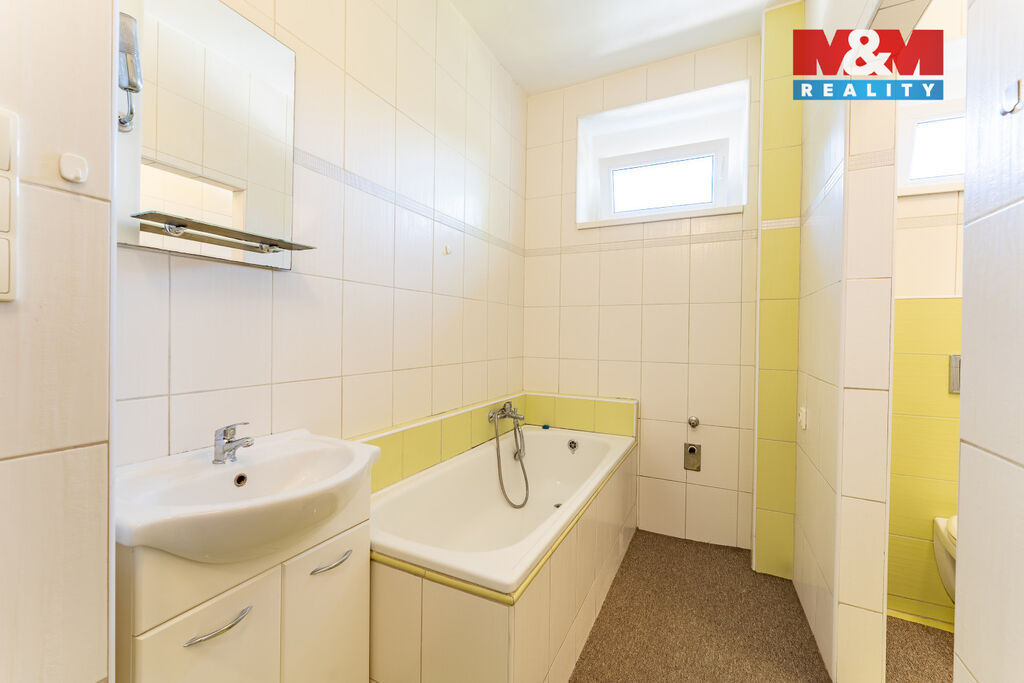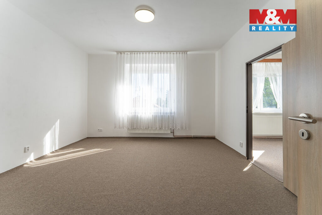 Pronájem bytu 3+kk se zahradou a garáží , Bezno – ulice Nemyslovická Nabízíme k dlouhodobému pronájmu prostorný a světlý byt o dispozici 3+kk, nacházející se ve 1. nadzemním podlaží menšího bytového domu v klidné části obce Bezno, ulice Nemyslovická. Byt prošel rekonstrukcí, včetně tepelného čerpadla a je ve velmi dobrém technickém stavu – připraven k okamžitému nastěhování. Dispozice zahrnuje tři pokoje, kuchyni včetně kuchyňské linky (bez lednice), koupelnu s WC a komoru. Součástí pronájmu je i užívání oplocené zahrady o výměře 280 m², která poskytuje příjemný prostor pro odpočinek, grilování nebo zázemí pro děti. Byt je ideální pro rodinu hledající klidné bydlení s možností využití vlastní zahrady. Parkování je možné před domem nebo v garáži.