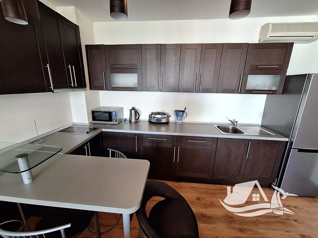 Byt o dispozici 2+kk a celkové ploše 105 m² se nachází ve 2. patře moderní rezidence s výtahem. Každý jeho detail působí vzdušně a elegantně – od prostorného obývacího pokoje s kuchyňským koutem, až po útulnou ložnici a dvě terasy, z nichž se otevírá nádherný výhled na moře.