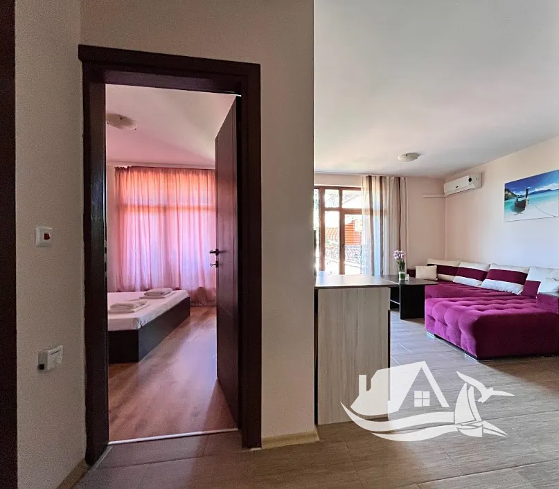 Tento útulný dvoupokojový apartmán o ploše 66 m² se nachází ve druhém patře moderního komplexu Rich 3, jen 100 metrů od písečné pláže. Je ideální jak pro vlastní užívání, tak jako chytrá investice k pronájmu. Z balkonu se otevírá výhled na moře.