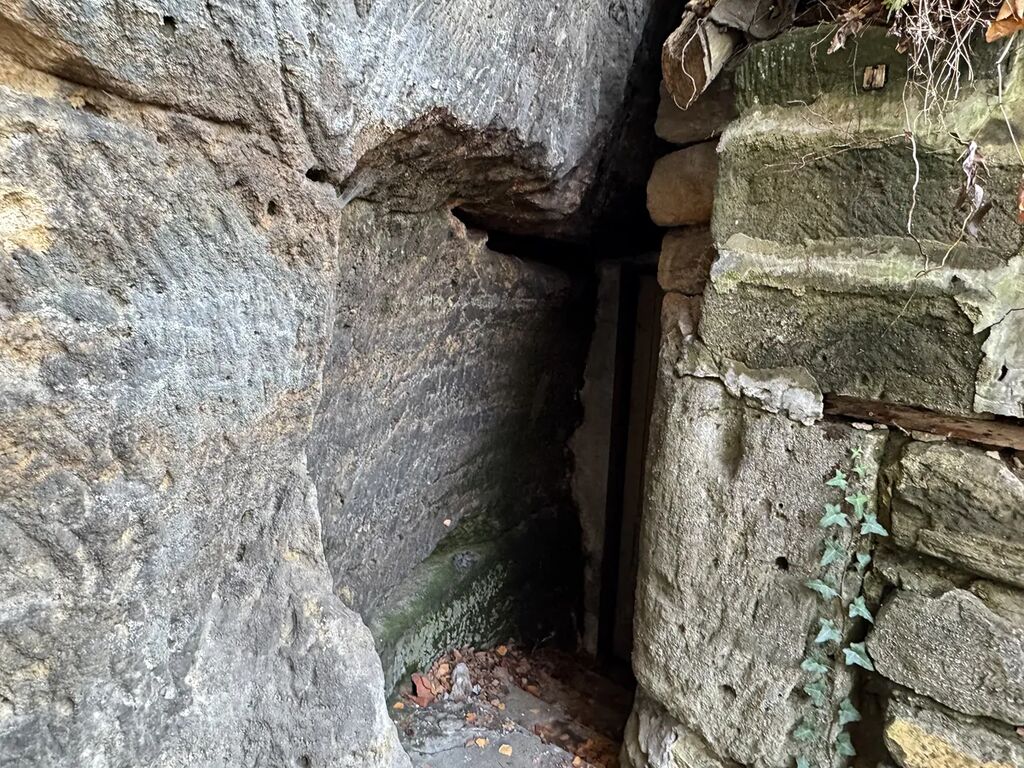 jako vinný sklípek či místo k posezení. Interiér je jedinečný díky pískovcovým