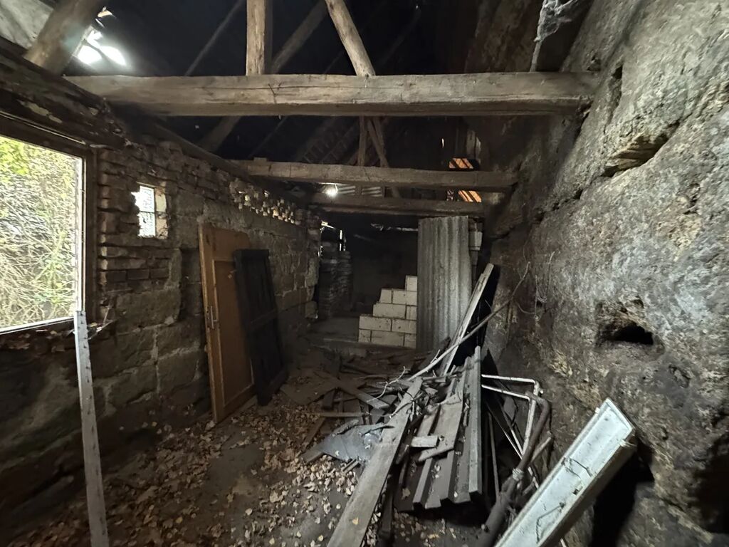 přípojka je funkční. Zadní část domu je přístupná zvenčí a vyžaduje rozsáhlou rekonstrukci.