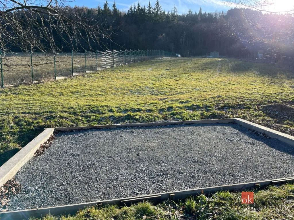 Pozemek je vhodný pro výstavu rodinného domu, pro rekreaci, zahradu, drobný chov nebo jako dlouhodobá investice. Nachází se v mírném svahu na hranici listnatého lesa, s výhledy na okolní kopce, pastviny a lesy. Je kompletně oplocen kvalitním 3D plotem a přístupný z obecní komunikace. Na pozemku je k dispozici zaměřená kóta na studnu, případně je zde možnost napojení na vodu z vedlejšího pozemku. K dispozici je elektřina a plyn. Kanalizace zatím není zavedena, ale je zahrnuta v územním plánu s realizací do 2–3 let. Součástí pozemku je plechová bouda (7 x 4 m) vhodná jako stavební zázemí nebo sklad materiálu.