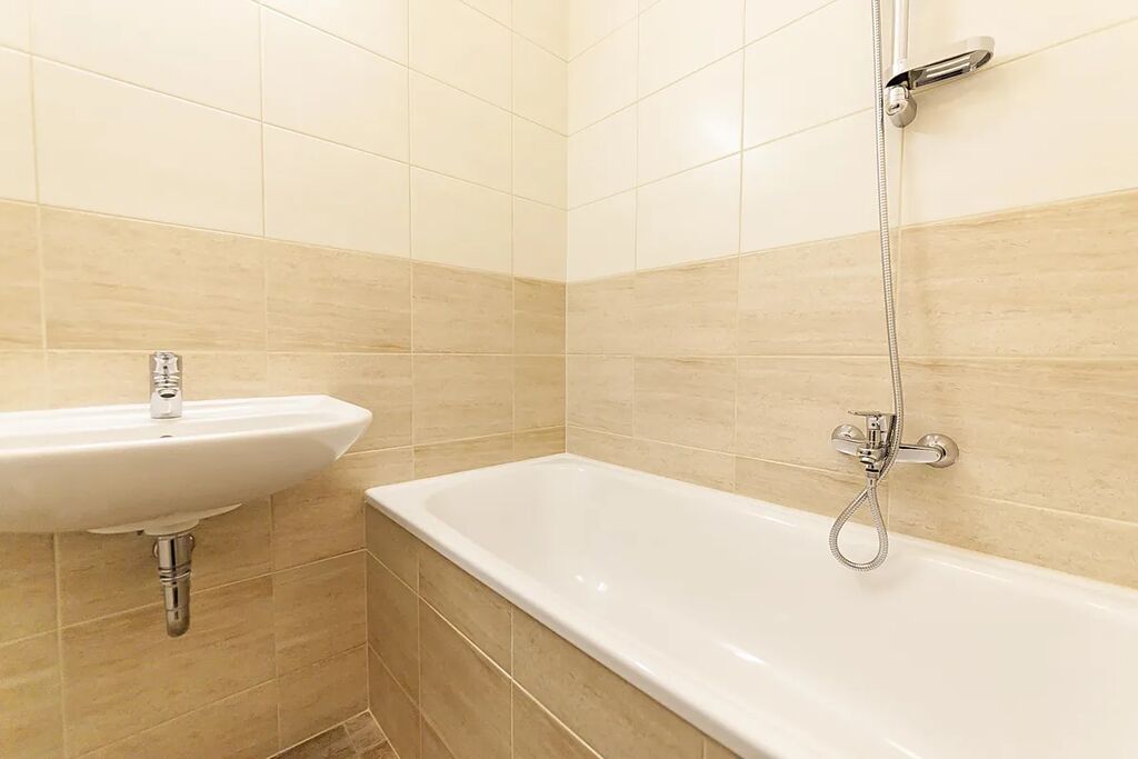 Nabízíme k dlouhodobému pronájmu světlý byt 2+kk v žádané lokalitě na pomezí Vinohrad a Vršovic v klidné ulici Rybalkova, Praha 10 - Vršovice. Byt se nachází se v 5.podlaží s výtahem o výměře 45,32 m² a bezprostřední blízkosti známých Havlíčkových sadů - Grébovky. Byt se pronajímá nezařízený, ale vybaven kuchyňskou linkou se spotřebiči (horkovzdušná el. trouba, sklokeramická varná deska, odsavač par, kombinovaná chladnička). Koupelna disponuje vanou, toaleta je umístěna samostatně. Pračka není součástí pronájmu, ale je zde na ní připravena přípojka . Na podlahách byla použita dlažba, plovoucí podlaha. Nájemník může využívat společnou zahradu u domu. Byt je vhodný pro pár či jednotlivce. Klidná lokalita s rychlým spojením do centra a plnou vybaveností v blízkém dosahu, mateřská škola, škola, lékař, restaurace, obchody, OC Eden 5 min. autem, Metro A - Náměstí Míru v pěší vzdálenosti, tramvaje a bus č. 135 také v pěší vzdálenosti, 5 min. autem na hlavní nádraží Praha