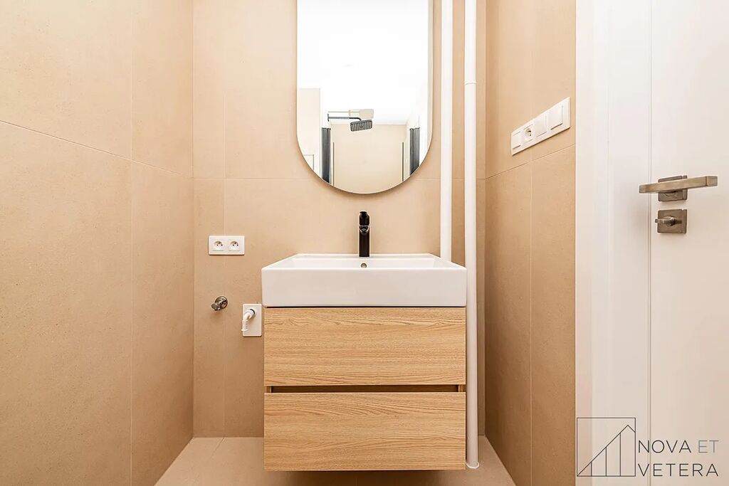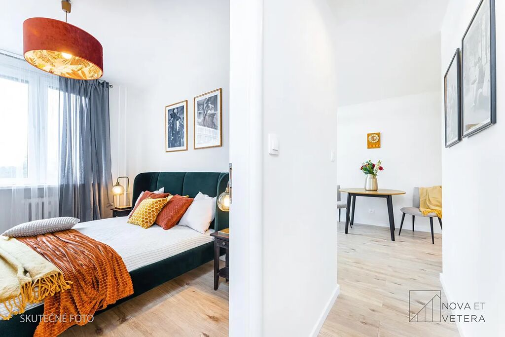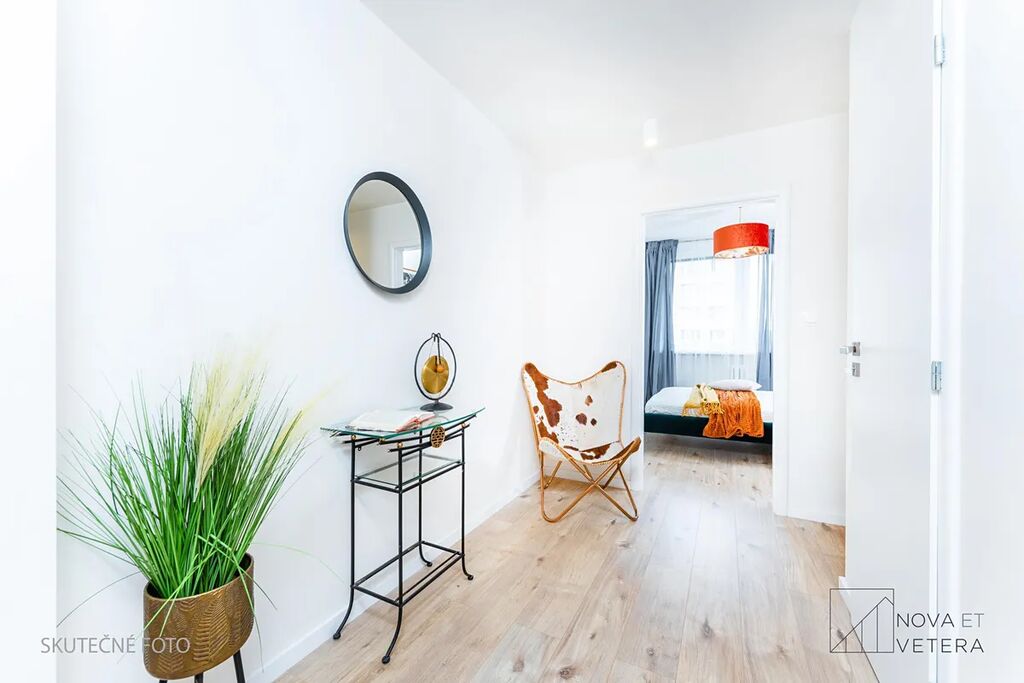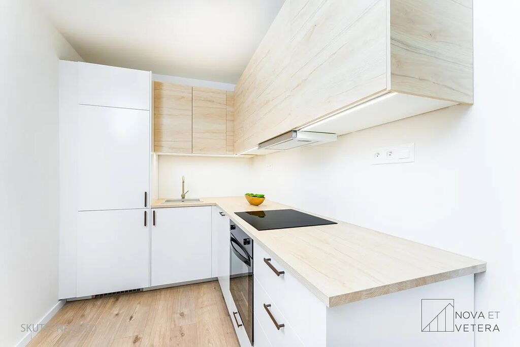 Byt právě prochází kompletní rekonstrukcí, která zahrnuje nové rozvody elektřiny, vody a odpadů, moderní podlahové krytiny, obklady, sanitu i interiérové dveře. Součástí vybavení je moderní kuchyňská linka na míru se spotřebiči značky Gorenje s pětiletou zárukou.