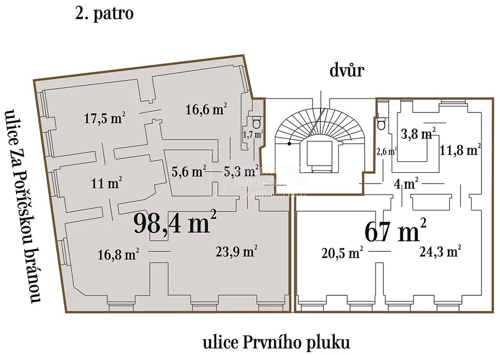 V budově lze aktuálně pronajmout kanceláře od 67 m² až do 268 m² (např. pronajmout si celé 2. patro, kde je celková kancelářská plocha 165 m2).