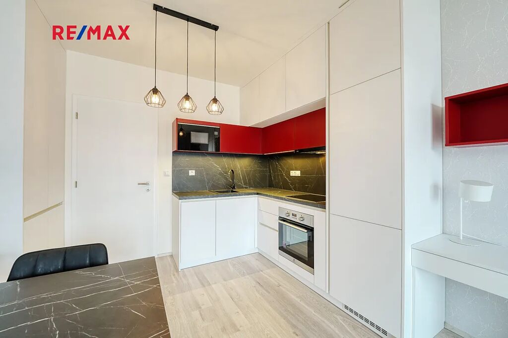 Tento byt je kompletně vybaven a připraven k okamžitému nastěhování, navíc veškeré vybavení bytu a jeho atmosféra je naprosto netknutá, jelikož v bytě zatím ještě nikdo nebydlel. Velmi kvalitní vybavení je v designovém provedení "na míru" od designového studia Arbyd. Je navrženo s množstvím praktických úložných prostor včetně značkových zabudovaných spotřebičů a vše je v bytě uspořádáno tak, aby byl využit každý cm². Podlaha - Dub Corton bílý; Obklad – odstín obkladu světle béžový a spárovací hmota jasmínová; Dlažba světle béžová a spárovací hmota jasmínová.